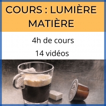 Cette vidéo permet surtout d'analyser la transparence du verre, les effets de brillance en parallèle avec un autre "effet métal" et d'autres sortes "d'effet mat" (sucre et mousse du café) .
