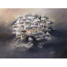"VILLAGE PAISIBLE". pastel 30 x 40 cm. La vie peut être paisible.